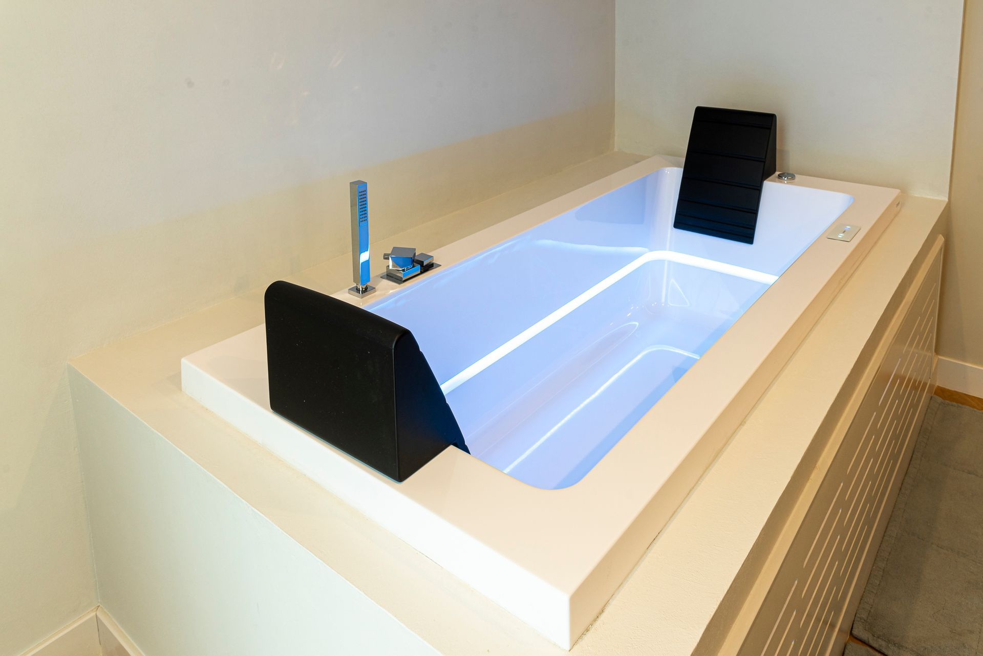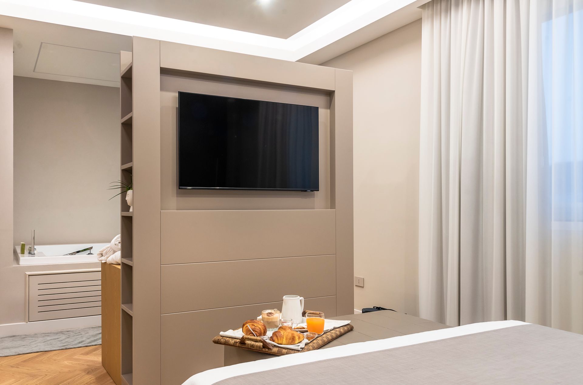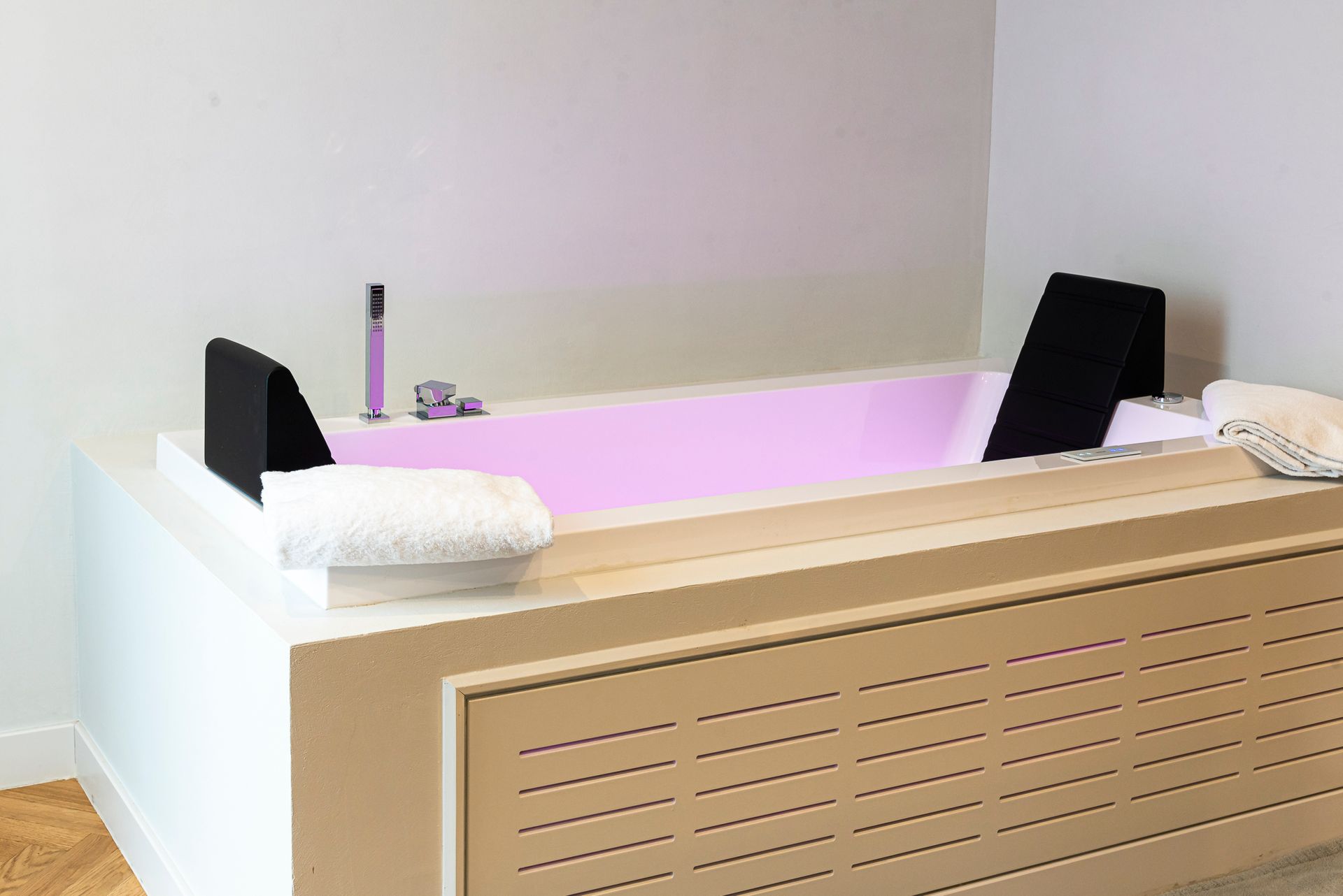 Questa suite dispone di vasca idromassaggio e sauna. Questa suite dispone di 1 soggiorno, 1 camera da letto separata e 1 bagno con vasca e set di cortesia. La suite dispone di aria condizionata, TV a schermo piatto con servizi streaming, pareti insonorizzate, minibar, armadio e vista sulla città. L'unità dispone di 1 letto.
